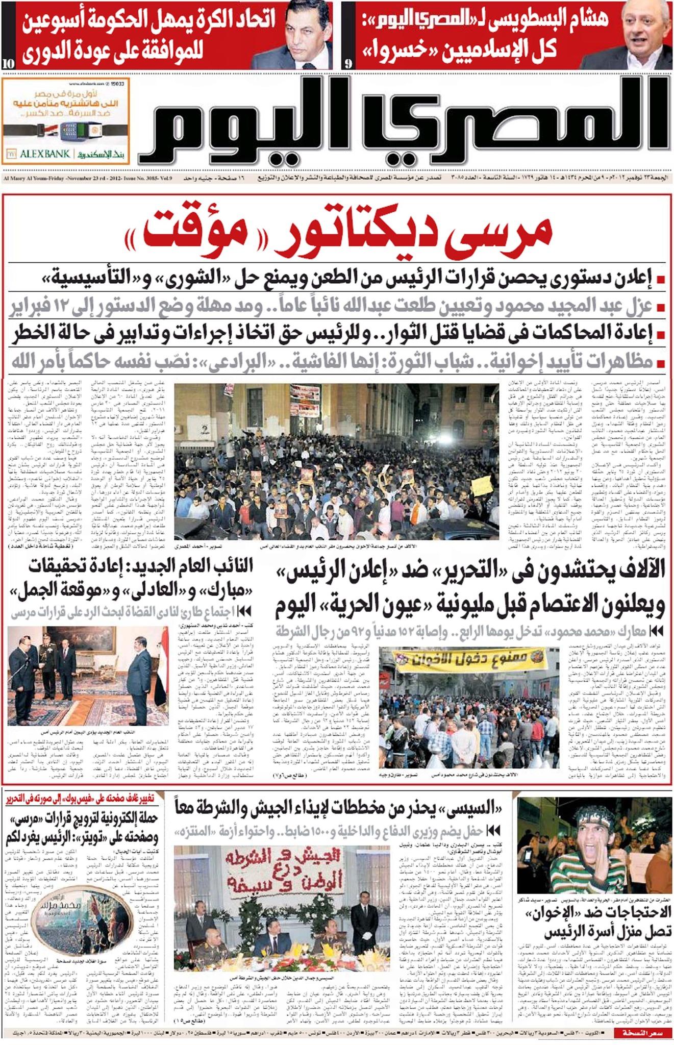 شاهد الصفحة الاولى من جريدة المصرى اليوم غدا